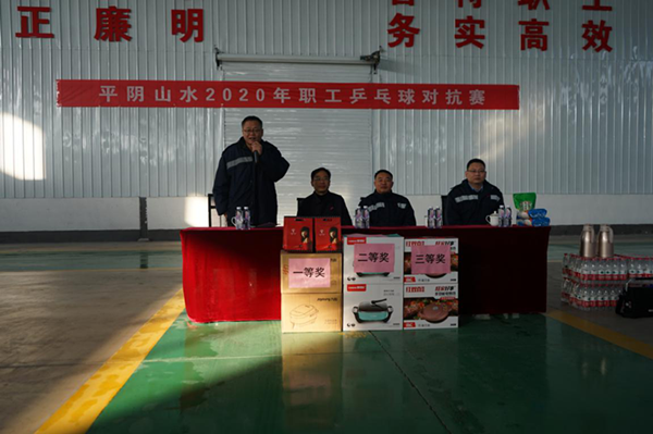 1125日,由平陰山水水泥有限公司主辦的平陰山水2020年職工乒乓球對抗賽在平陰山水塑編公司辦公區舉行。來自平陰山水公司骨料車間、三線項目部等部門及兗州中材建設有限公司平陰分公司共計30參賽隊員參與了本次賽事。平陰山水水泥有限公司侯書記等出席了開幕式,并致宣布比賽開始。
