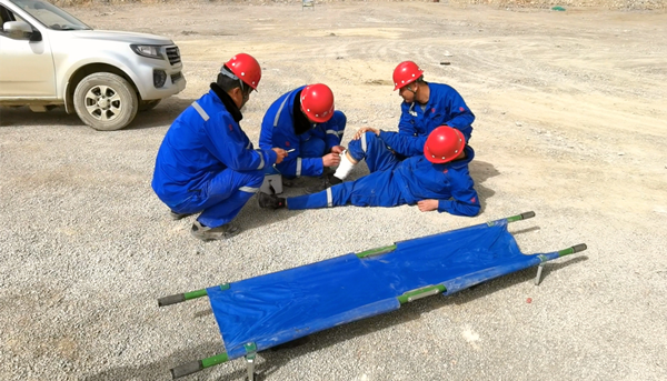 本次演練由泗水分公司經理劉進德為總指揮,指揮領導應急小組開展此次爆破演練。演練主要模擬爆破作業過程中因炮孔充填深度不夠,導致爆破飛石砸傷人員的場景。演練開始后,應急小組立即啟動專項應急預案,迅速組織警戒治安組、醫療救護組等各小組按照分工與職責,趕赴現場展開救援,緊急處理傷員傷勢并送醫救治,圓滿完成各項演練任務。