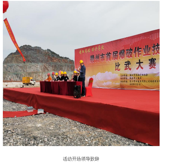 為了推廣‘精細爆破,安全高效’的先進爆破經驗,提升爆破作業(yè)人員的業(yè)務技能,培養(yǎng)高素質的爆破作業(yè)隊伍,應贛州市公安局要求,2018年11月01日兗州中材建設有限公司瑞金項目部協(xié)同贛州市爆破行業(yè)協(xié)會在瑞金萬年青貓子寨石灰石礦山舉辦了贛州市首屆爆破作業(yè)技能與安全比武大賽活動。 本次“贛州市首屆爆破作業(yè)技能與安全比武大賽”是贛州市舉辦的第一屆爆破大比武活動,共有60余人參加比賽,另外還有贛州區(qū)域公安干警及各涉爆單位人員代表120余人到現(xiàn)場觀摩。賽前,項目部副經理蘭武林、經理助理閆循慧向全體參賽及觀摩人員匯報了我公司在貓子寨石灰石礦山生產施工情況及礦山爆破施工狀況,組織大家觀摩施工現(xiàn)場。活動競賽分理論考核和實踐操作考核兩部分。活動現(xiàn)場參賽人員積極認真,觀摩人員井然有序,比賽過程嚴肅緊張。