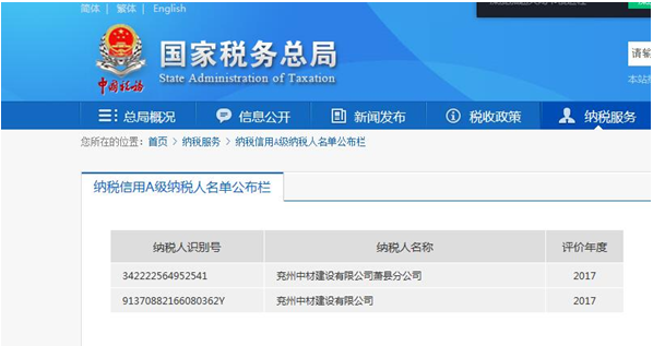 近日,稅務(wù)機(jī)關(guān)組織實(shí)施的2017年度納稅信用等級評定結(jié)果“出爐”,兗州中材建設(shè)有限公司繼2015、2016年度榮獲A級納稅信用企業(yè)后,再次榮獲A級納稅信用企業(yè)。 稅務(wù)部門每年度依據(jù)納稅人信用歷史信息、納稅內(nèi)部信息和外部信息等內(nèi)容對納稅人進(jìn)行信用評價(jià),依照信用程度設(shè)為A、B、C、D四級,A級納稅人是稅務(wù)部門評定的納稅信用級別最高的納稅人。獲得A級納稅信用等級是企業(yè)重要的信用名片,有利于企業(yè)節(jié)省成本,提高辦事效率,也有利于企業(yè)優(yōu)先享受政府各部門提供的優(yōu)惠政策,促進(jìn)企業(yè)健康發(fā)展。