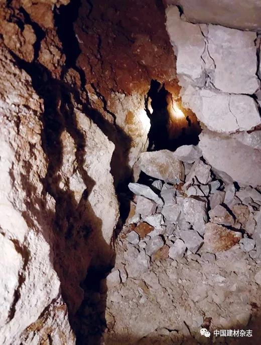 2017年11月26日,硐室開拓施工按照設計要求按部就班進行。在硐室開拓過程中遇到了非常復雜的地質條件,溶洞貫穿爆破區域。為了更好地了解溶洞貫穿情況,為硐室爆破設計的修改提供更確切的數據,孔總與金總不辭辛苦,親自爬進1.0m×1.0m的硐子中探查實際情況,這種求真務實的精神令人欽佩。