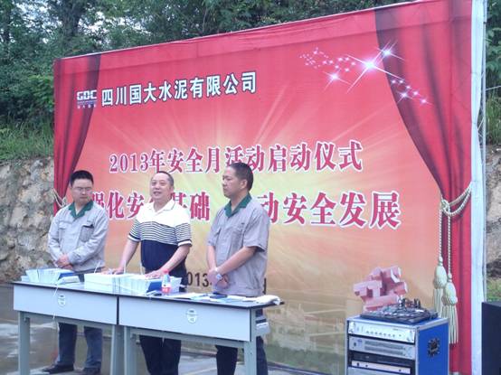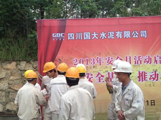 四川國大水泥舉行安全月啟動儀式 6月1日,四川國大水泥有限公司舉行了以“強化安全基礎,推動安全發展”為主題的安全月啟動儀式。江油市含增鎮安辦主任唐開文到會并講話。會議由國大副總鐘義主持,兗州中材國大礦山的全體員工也應邀參加。 唐開文在講話中回顧了過去幾年國大水泥對安全生產作出的巨大貢獻,他還表示,礦山現場的安全工作已成為江油市乃至綿陽市的一個安全示范亮點,這與兗州中材的積極努力也是密不可分。國大安全經理余德權在對安全生產諸方面作出重要指示后,也針對礦山安全施工提出更高的要求,希望兗州中材能將良好的安全工作習慣保持下去。會上,給全體員工發放了安全手冊。每位員工在安全月宣傳墻上簽名,這將會議推上了一個高潮。會后,員工們均表示:通過此次啟動儀式,使得安全工作更加深入人心。對于安全生產的重視,時刻不敢松懈! 杜國賓