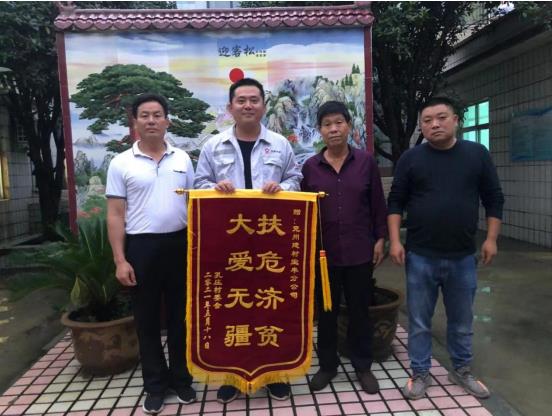 為表達寶豐分公司多年來對村莊的貢獻和對村民們的情誼,村委會特意送來了“大愛無疆,扶危濟貧”錦旗,以示感謝!