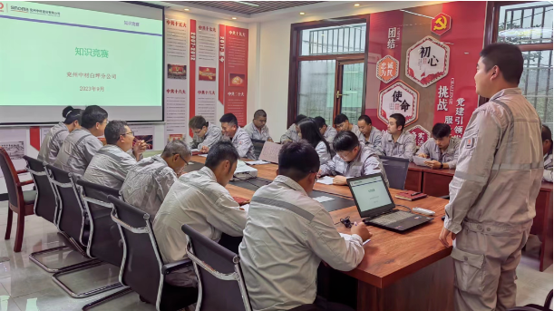 | 為深入學習貫徹黨的二十大精神,團結動員廣大職工群眾立足崗位、主動擔當,務實作為、聚力攻堅,推動公司2023年度工作目標任務完成。9月19日下午,白坪分公司開展“六比六保六爭取”知識競賽活動,項目經理宋道明主持競賽。