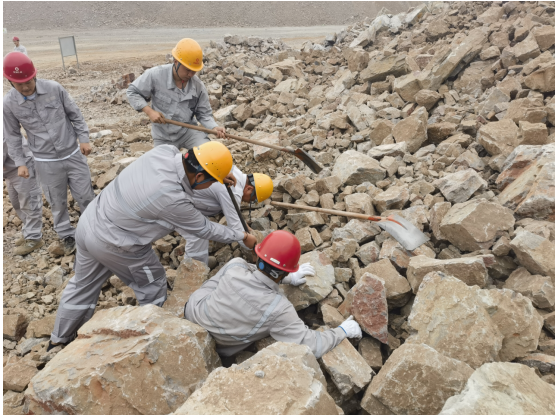 上午10時整,演練正式拉開序幕。假設情況是該露天礦山某區域發生了邊坡坍塌,造成一名作業人員腿部受傷被困。接到報告后,項目副經理楊宇立即啟動應急預案,迅速組織了由醫療救護組、應急搶險組、警戒保衛組、物資保障組等部門人員組成的應急救援隊伍,攜帶救援裝備,迅速趕赴事故現場。同時,通訊保障組也迅速建立起臨時通訊網絡,確保現場信息暢通無阻。