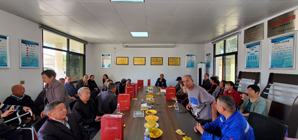 公司工會主席劉衍勝、萬年分公司經理鄭發軍和江西郴州黨支部書記姜嵩(玉山項目部經理)帶領支部多名黨員及兩個項目的全體員工熱情接待了“回家”的退休職工及其家屬共26人,他們大多已年逾古稀,兩鬢斑白,有的甚至步履蹣跚,但重回曾經工作過的環境,勾起無數回憶,重新實現相聚,大家笑容滿面、幸福滿滿。