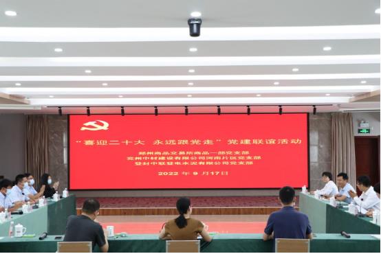 為進一步深化黨建聯(lián)建共建,凝聚發(fā)展合力,9月17日上午,河南片區(qū)黨支部代表赴登封中聯(lián)登電水泥有限公司與登封中聯(lián)登電水泥黨支部、鄭州商品交易所商品一部黨支部開展黨建聯(lián)誼活動。